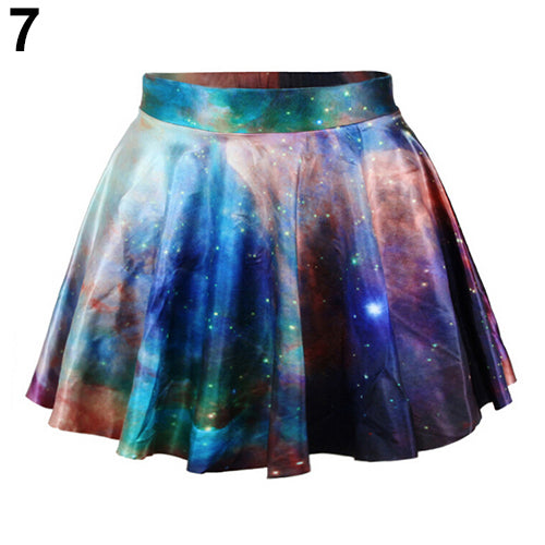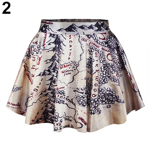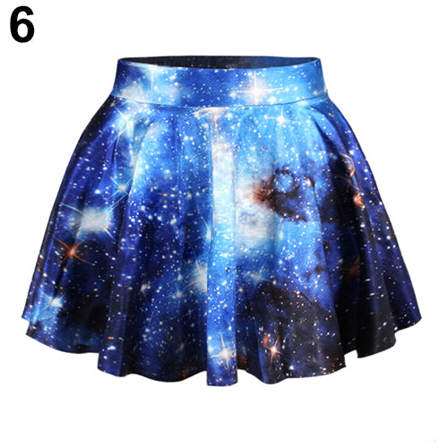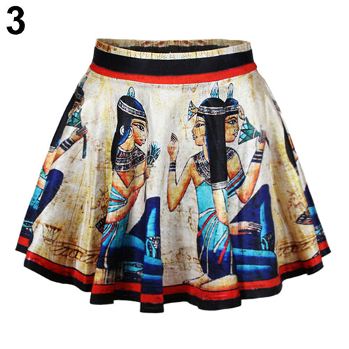 Fashion Women's High Waist  40Cm Pleated Galaxy Egyptian Mural Mini Flared Half-length Skirt